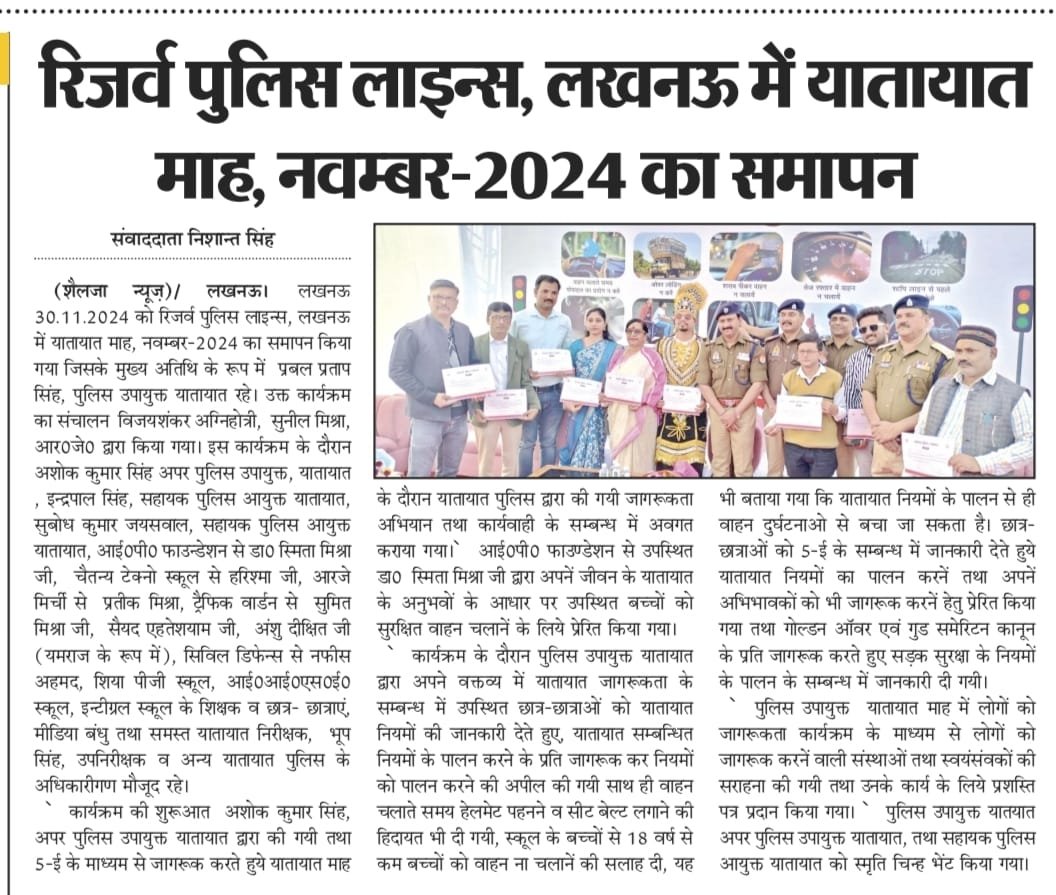 Traffic Awareness Program in Jai Prakash Narayan Vidyalaya Lucknow