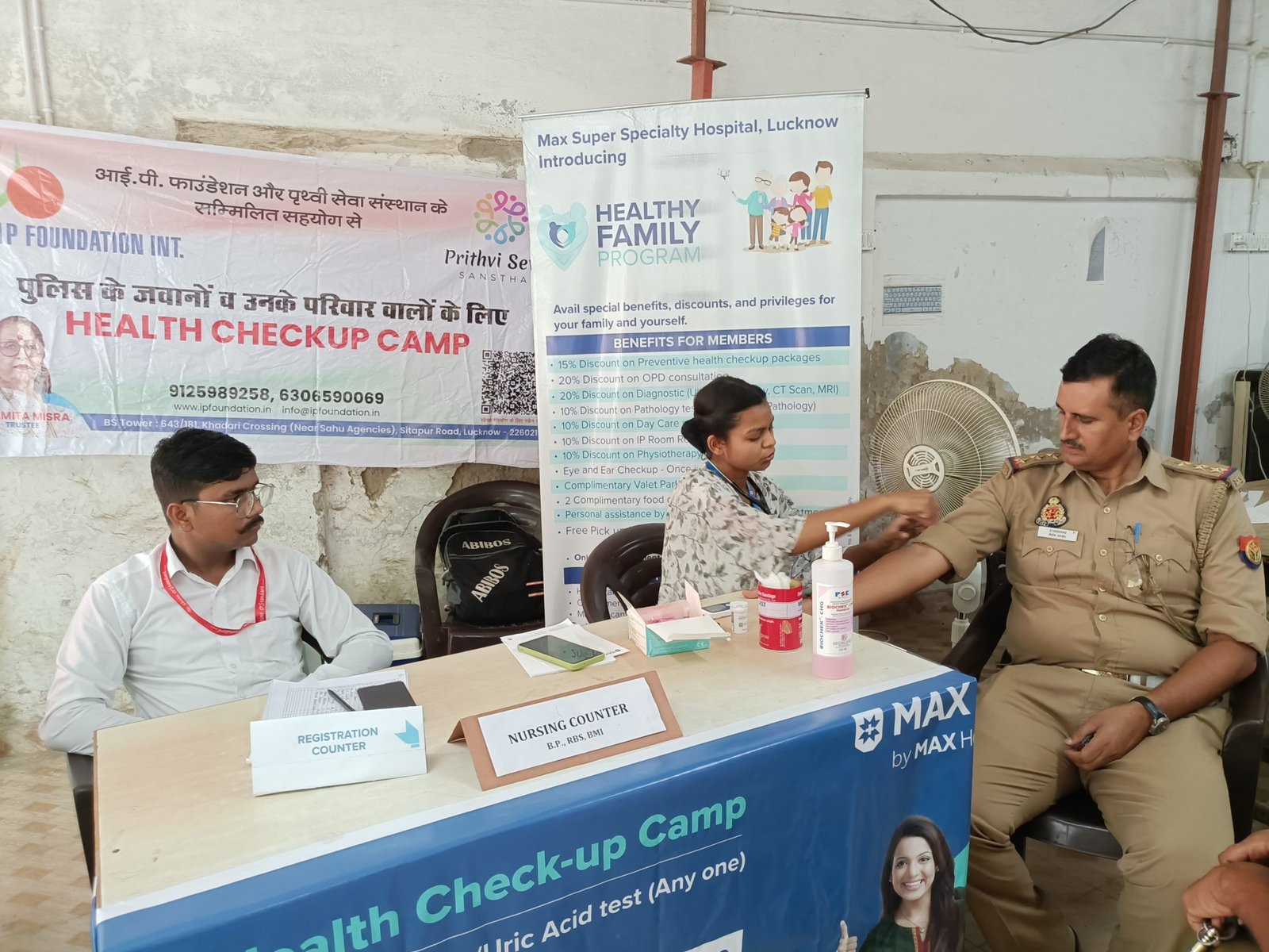 Free Health Check-up Camp by IP Foundation in Collaboration with Max Hospital for Police Personnel at Sadar Police Station, Cantonment, Lucknow